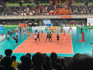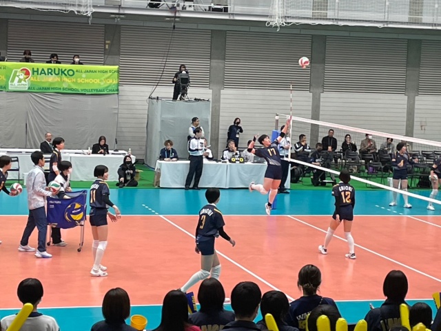 コートには選手たちの明るい声が響き渡り、笑顔を絶やさない女子の試合は常に前向きでした。そんな選手たちに元気づけられながら、応援団は精一杯エールを送り続けました。本日の試合は残念ながら負けてしまいましたが、特に2セット目の終盤にかけて、諦めずに1点を丁寧に重ねる姿が本当に頼もしかったです!