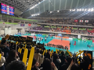 応援団はこの試合を最後に、全員そろって東京を出発しました。会場は離れますが、学校に戻っても応援を続けます!明日からも応援をよろしくお願いします!