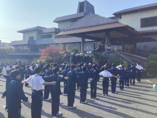 2025年04月12日(土) 行事 < 学校ニュース < 最新ニュース 【中1】宿泊研修3日目 その① おはようございます。3日目の朝を迎えました。少し肌寒いですが、いい天気の奈良です。子供たちは、朝のラジオ体操が始まる時間までには全員がきちんと集合完了し、昨日の反省を生かした行動が早速できていました。日々成長していますね。 喜び・感謝・敬いの心を持ちながら朝食をしっかりとったあとは、本日のメインである平城宮跡の見学に行ってまいります。 いただきます!