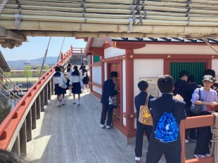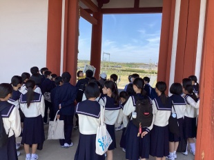 2025年04月12日(土) 行事 < 学校ニュース < 最新ニュース 【中1】宿泊研修3日目 その② 平城宮跡にて、様々な建造物を次々に見学しました。歴史好きにはたまらない時間だったようですね。ここでクラスの集合写真も撮ることができました。 歴史を堪能した後は屋外にて昼食。いい天気でよかった! 13時半ごろに現地を出発しました。15時到着予定、教室に戻り月曜日の予定等を確認してからの解散となりますので、よろしくお願いいたします。