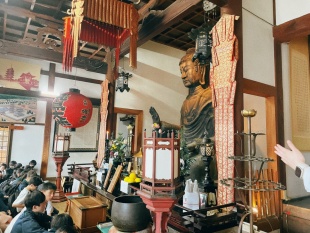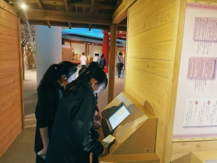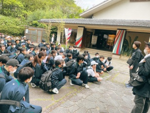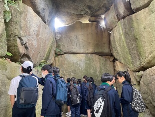 古代の歴史が色濃く残る飛鳥の地では、石舞台古墳や飛鳥寺などを見学し、調べ学習にて事前に学んだ歴史を実際に感じる貴重な体験ができました。特に飛鳥寺の中では大きな飛鳥大仏に圧倒されながら、ガイドの方のお話を熱心に聞く姿も見られ、生徒たちの学びに対する意欲が湧いたようでした。