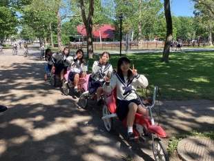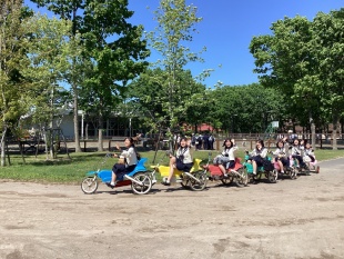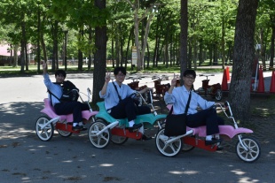 2025年06月09日(月) 行事 < 学校ニュース < 最新ニュース [高2]修学旅行(1日目)③ ノーザンホースパークでは,晴天のなか,自転車,バスケットボール,お花見や牧場散策など充実した時間を過ごしました。 ただいま,道の駅占冠で,トイレ休憩。 この後,星野リゾートトマムに向かいます。
