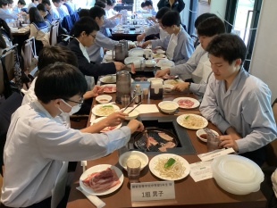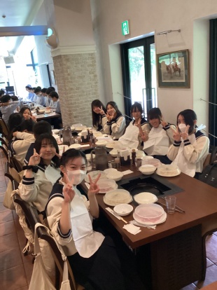 2025年06月11日(水) 行事 < 学校ニュース < 最新ニュース 中5修学旅行(1日目) ③ ノーザンホースパークでは、クラス写真を撮った後、昼食をいただきました。 メニューは、豚・ラム・牛肉のBBQです。 北海道に着いて初めての食事はとても美味しく、友達との会話も弾んでいました。