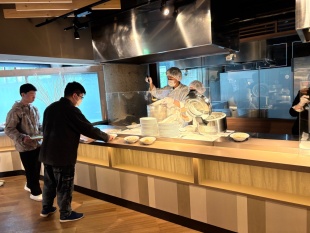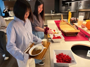 2025年06月12日(木) 行事 < 学校ニュース < 最新ニュース 中5修学旅行(2日目) ③ 11時40分 ホテルに戻り、レストラン「ニニヌプリ」で昼食をいただきました。カレーライスをもりもり食べて、午後からのアクティビティに備えます。 アクティビティは、「釣り堀フィッシング」「サイクリング」「モーモーカート」「ファーム富田見学」「こねこねパン工房」「ミックスジャム作り」「缶振りアイス作り」の中から自由に選べます。 五感をフルに生かして、爽やかに晴れた北海道の自然を楽しんできます。