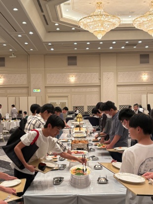 2025年06月13日(金) 行事 < 学校ニュース < 最新ニュース 中5修学旅行(3日目) ⑥ 18時30分 ホテルに到着しました。 部屋に荷物を置いたらすぐに夕食です。 多彩なお料理に食が進みます。 充実したデザートの数々、中にはケーキを全種類制覇した強者も。 また、この旅行中にお誕生日を迎えた生徒へ、ホテル特製の誕生ケーキと、中川主任からhappy birthdayの歌のプレゼントがありました。 17歳のお誕生日おめでとう。今日のこと、ずっとずっと覚えていてくださいね。
