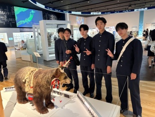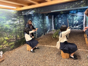 2025年06月14日(土) 行事 < 学校ニュース < 最新ニュース 中5修学旅行(4日目) ③ 10時00分 ウポポイ(民族共生象徴空間)に到着しました。 クラス写真を撮った後、博物館と展示室を見学しました。 人間にとって強い影響力をもつ「カムイ」の概念の説明、住まいや衣装などくらしの文化についての説明など、映像や展示物を通じて学ぶことができました。 次にアイヌの古式舞踊やムックリ(口琴)の楽器演奏を鑑賞しました。 さらに弓矢体験したり、アイヌの工芸品を購入する生徒もいました。