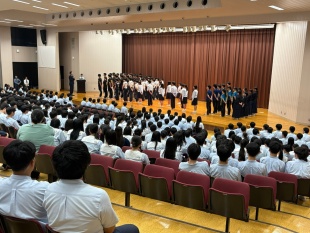 2025年07月09日(水) 行事 < 学校ニュース < 最新ニュース 全国・近畿大会壮行会 本日高校の全国大会・近畿大会に出場するクラブへの壮行会を行いました。 インターハイに出場する男女バレーボール部を筆頭に、囲碁部、新聞部、放送部、サイエンス部、美術部、かるた愛好会といった文化系クラブも全国総文や全国大会に参加します。 また近畿大会には卓球部や剣道部が出場します。 それぞれの代表者が話をしてくれた目標に向けて、ぜひ最後まで力を出し切ってほしいと思います。 みなさんの活躍と成長を願っています。頑張れ開智生!