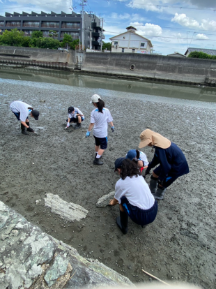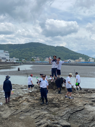 7月11日(金)に和歌浦の観海閣へ干潟の観察実習に行ってきました。時折日が陰るような天候でしたが、やはり季節は夏。暑い中でのフィールドワークとなりましたが、生徒の皆さんは時間いっぱいに楽しみながら観察を行いました。