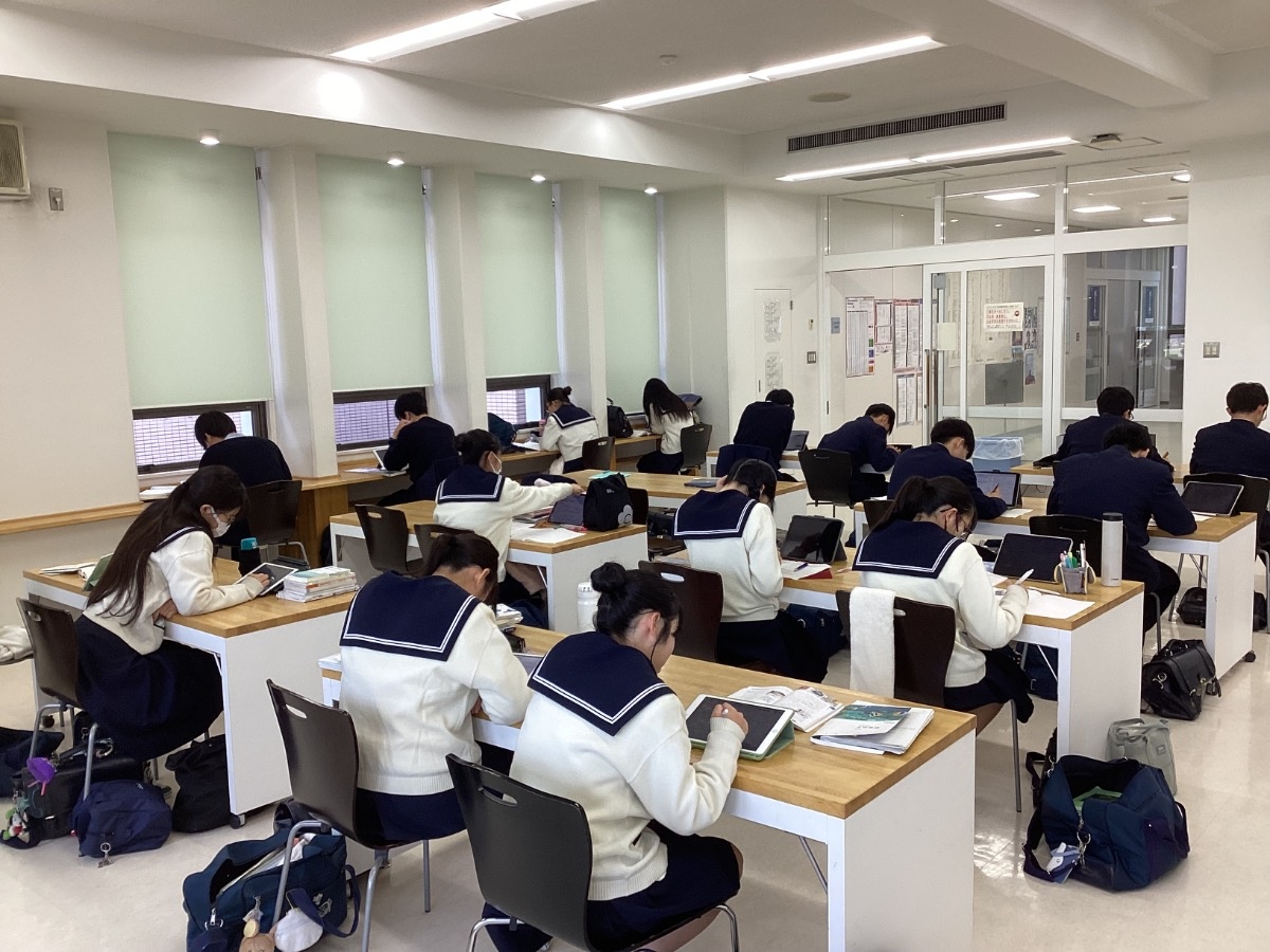 2025年12月02日(火) 行事 < 学校ニュース < 最新ニュース 第4回定期考査 第4回定期考査が始まりました。 試験に向けて、放課後だけでなく早朝からも、多くの生徒がいろいろな学習スペースで自習しています。 寒い日が続きますが、体調に気をつけて精一杯の力を発揮してください。 良い結果が出るよう応援しています。