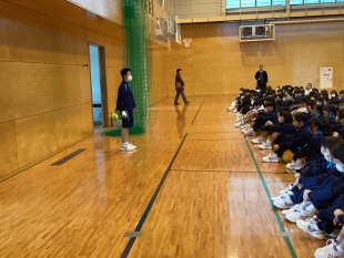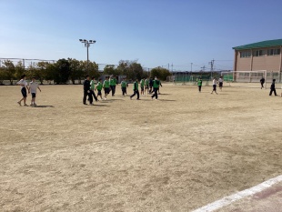 3/12(木)、中1クラスマッチを行いました。風が強い中でしたが天気には恵まれ、まず男子はサッカー、女子はバレーボールで勝負です!