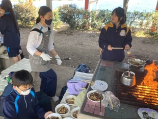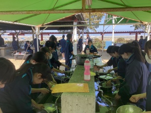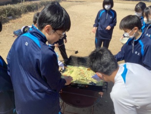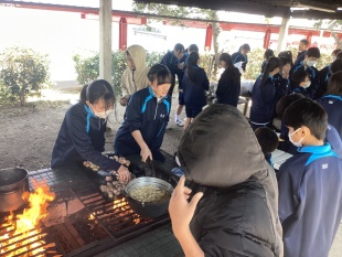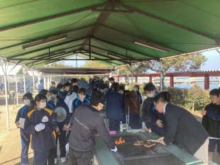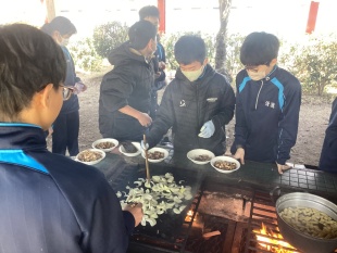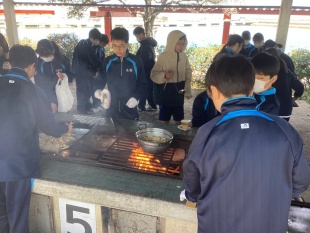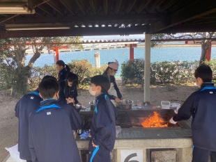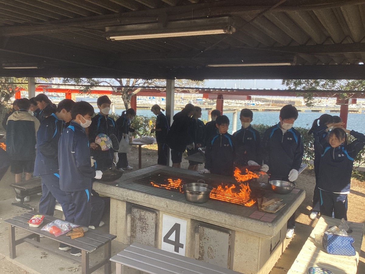 3月17日(火)中等部1年生は、大阪府岬町にある青少年海洋センターで体験学習(野外にて調理実習)に行きました。