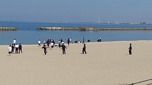 片付けをすませたあとは、野球やドッジボール、砂浜ダッシュなど各自で体を動かしました。