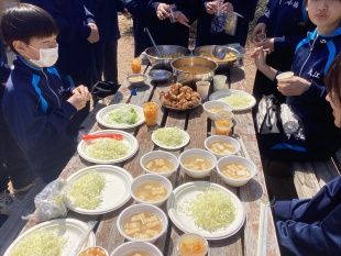 各班で仲間たちと力を合わせ、すばらしい料理が完成しました!ありがた~くいただきましょう!