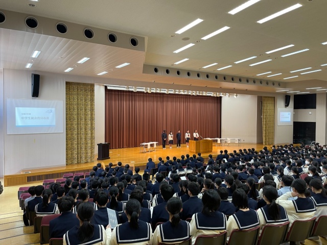 本日、5限6限目の時間に開智ホールにて中学生徒役員改選を行いました。