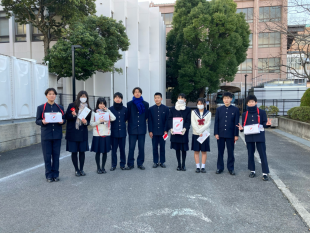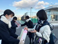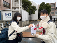 気温7度という朝の寒い中、生徒会役員の呼びかけに多くの生徒と先生が応えてくれました。