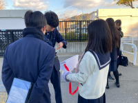 中学生徒会、高校生徒会が合同で赤い羽根共同募金を実施しました。