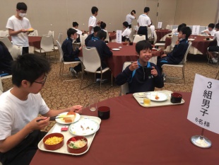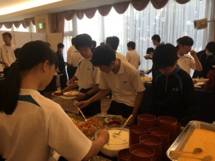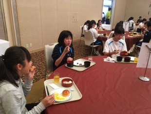 6時に起床し、朝食バイキングをいただきました。最初は少し眠たそうにしていましたが、たくさんご飯を食べて楽しく過ごしています。