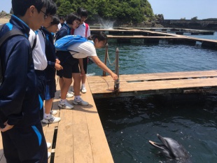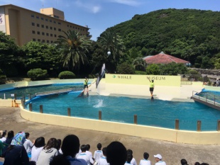 各クラスの体験学習先で自然や動物に触れ合い、とても楽しく過ごしています。近くで見るイルカやクジラのショーでは、ジャンプ力や動きに驚き、歓声があがりました。