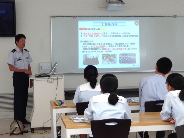 2017年07月22日(土) 過去のニュース 防衛大学校・防衛医科大学校説明会 本日、多目的教室にて防衛大学校と防衛医科大学校の説明会が行われました。説明会では自衛隊の仕事や学生生活についてお話をしていただき、大学校について理解を深めることができました。