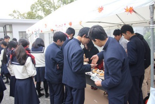 またこの間には、開智の玄関の外では模擬店の出店もあり、軽食を買い求める生徒やOB・OGの皆さんの姿であふれかえっていました。