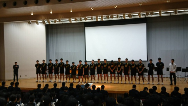 2017年12月20日(水) 過去のニュース 男子バレー部春高バレー壮行会 男子バレーボール部の春高バレー壮行会を実施しました。 今年のインターハイでは、全国制覇まであと一歩のところまで上り詰めました。 今回の大会では、日本の頂点をめざして、全力で戦ってきてください。