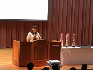 本日2限目より、開智ホールで、第10回中学校英語スピーチコンテストが開催されました。出場者の皆さんは、緊張感が漂う中、精一杯の心のこもったスピーチをしてくれました。中1は、教科書の長文Alex’s Lemonade、Education First: Malala’s Storyを、中2は、将来の夢や環境問題など、それぞれが伝えたい内容を、中3も着物や電車など、自分の話したい内容をパワーポイントでエンターテイメント性を加えてスピーチしてくれました。この日まで、朝や放課後に練習を頑張った生徒たちには、会場から大きな拍手がおくられました。参加者の皆さん、本当にお疲れ様でした。