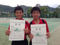 2014年07月14日(月) 過去のニュース 第67回和歌山市中学校総合体育大会ソフトテニス競技(結果) 7月13日(日)紀三井寺公園庭球場で夏季大会の市内予選が行われ、 男子ダブルス160ペアを超える激戦を勝ち抜き、 開智の明渡(3年)・高松(2年)ペアが見事5位入賞をはたしました。 今月26日(日)に同会場で行われる県大会への出場も決まり、 さらに近畿大会への出場を目指して頑張りますので、 これからも応援よろしくお願いします。