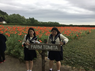 2018年06月11日(月) 過去のニュース 中5 北海道修学旅行 その4 午後4時頃、ファーム富田に到着しました。ラベンダーの咲き頃はまだのようでしたが、ところどころに咲いている花がとても綺麗でした!しかし、風が強くてかなり寒い。。。 そんななか、生徒たちは名物のソフトクリームを食べたりお土産を買ったりしながら思いっきり楽しんでいました。これから富良野プリンスホテルに向けて出発です!