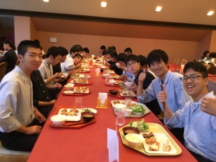2018年06月11日(月) 過去のニュース 中5 北海道修学旅行 その6 いよいよ夕食です。バイキング形式なので、おかわり自由! 料理もデザートも何往復もしていました。食べることがとても好きなんですね。 明日は朝早く、6時15分の起床です。今日の疲れを取るためにしっかり睡眠をとって、 明日も目一杯楽しみましょう!おやすみなさい。