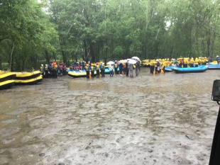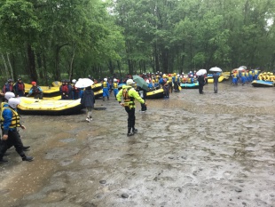 しかし天候は雨、さらに今日の水温は約6度だそうで、手足の感覚がだんだんなくなっていくのが分かりました。いつもより川の流れも早くかなり厳しいコンディションの中、みんな力を合わせて漕ぎ、無事ゴールに辿り着きました。とても楽しかったようで、一生の思い出になったことと思います。