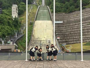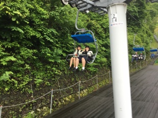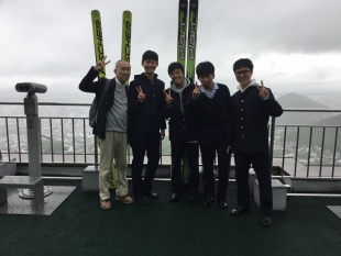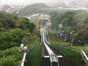 また、リフトに乗ってジャンプ台の頂上まで行きました。頂上からの景色は最高。。。のはずだったんですが、今日はモヤがかかっていてあまり遠くまで見ることができませんでした。快晴のときにまた訪れたいものです。