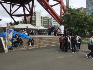2018年06月14日(木) 過去のニュース 中5 北海道修学旅行 その21 約8時間の札幌・小樽の自主研修を終え、生徒たちが札幌テレビ塔に徐々に帰って来ています。 風が強く気温が寒いなか、札幌ラーメンや海鮮丼を食べたり、オルゴール堂や旧北海道庁を訪れたりなど、班ごとに有意義な自主研修を過ごせたようです。 この後はサッポロビール園に向かい、北海道名物のジンギスカンをいただく予定です。食べ放題のようですので、満腹になるまで食べていいですよ!