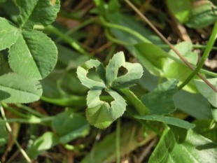 その証拠に室内で栽培しているクローバーにも同じような欠けのある葉が出現します。