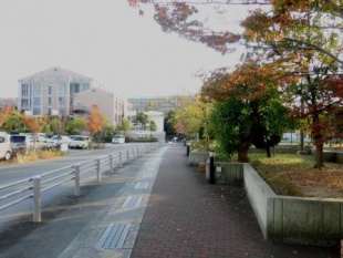 開智の校門の前では,ケヤキ(夏緑樹林)が紅葉しています。