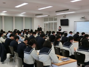 2018年12月19日(水) 過去のニュース 中4・5スーパー理進コース 体験講義 本日は大阪府立大学から安田昌弘先生をお招きして、中4・5のスーパー理進コースの生徒を対象に、体験講義が行われました。 安田先生のご専門は化学です。先生ご自身の研究のお話,大学で行っている授業の模擬講義をしてくださり,生徒たちは真剣に耳を傾けメモをとっていました。 教科書で学習している内容はしっかり理解して社会に出て行く必要があります。今日の講義内容をしっかり振り返り,日々の勉強に取り組んでいってもらいたいですね。