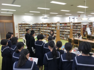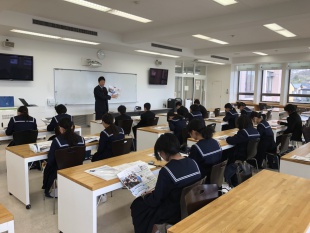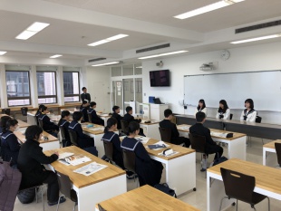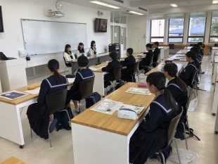 教育内容の説明では、箕島中学校出身で現在高校1年生の女子生徒の皆さんにも特別ゲストとして来て頂きました。先輩として優しく、頼もしく話をしてくれたおかげで、中学生の皆さんも熱心に話を聞いていました。また授業見学では実際に教室に入ってもらい、高校の授業を少しだけ体験して頂きました。事前学習として本校の概要を丁寧に調べていたり、質問を幾つも考えてきてくれたおかげで、質疑応答の時間は、緊張しながらも多くの質問をして頂きました。その熱心な姿勢に感心させられ、本校としても大変有り難い機会となりました。