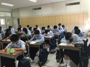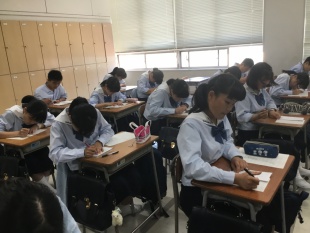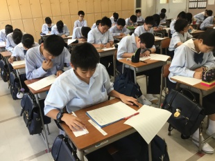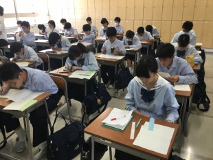 2019年06月05日(水) 過去のニュース 中学校 市民憲章 本日の5・6限を使って中学生は市民憲章を実施しました。下記の写真はその様子です。どのクラスも大変静かな雰囲気で集中して綺麗な字を書こうとすることが出来ていました。自分の納得のいく字を2時間で書き切ることが出来たでしょうか。1ヶ月後に迫った第2回定期考査に向けても今日と同じように質が伴った勉強が出来ているかという視点を持って家庭学習に取り組んでくださいね。