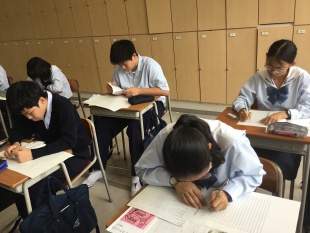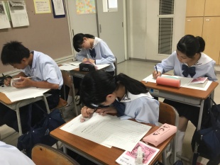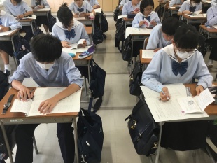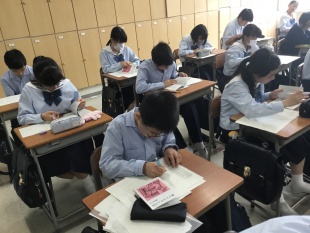 2019年07月10日(水) 過去のニュース 中学校 読書コンクール 中学校では本日の5・6限を使って読書コンクールを実施しました。課題図書を集団読書して紹介文を400字以内で書きました。生徒達は真剣に課題図書と向き合い、読み手が面白いと思える紹介文を書こうとすることが出来ていました。スマホをはじめとする情報媒体の普及によって活字離れが進む世の中ですが、読書を通して生徒の皆さんに表現力や豊かな感性を身につけてほしいと思います。通学時間などちょっとした時間に本を読む習慣をつくってもよいかもしれませんね。
