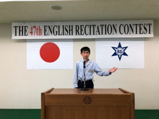2019年09月30日(月) 過去のニュース 中学生英語暗唱大会 第47回中学生英語暗唱大会が開かれました。 2年1組の亀田瑠似くんが優勝しました。 聴衆の心を揺さぶる暗唱でした。おめでとうございます。