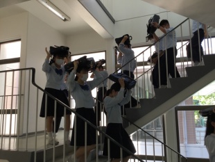 2020年07月31日(金) 過去のニュース 避難訓練 本日、午前中に避難訓練をしました。 放送が流れた後、机の下に隠れて、グラウンドへ避難しました。 また、浸水時にも備え、4階の避難場所も確認しました。 みなさん、静かに行動できていましたね。 いつ何が起きるか分からないので、今日のことをしっかり覚えておいてください。