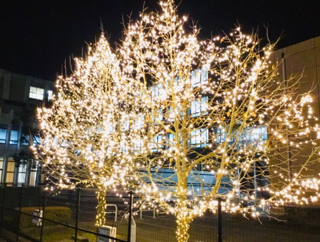 今日はクリスマスイブです。開智のイルミネーションも明るく輝いています。