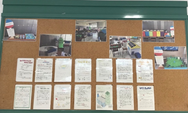 文化祭当日の展示では、「段差のない道路」「地域交流ができる病院」「発電施設を兼ね備えた森林」といったように、住み続けられるまちに必要と考えるものに、すべての人が安心して暮らせるために必要な要素を加え、教室全体を住み続けられるまちにつくり上げていました。