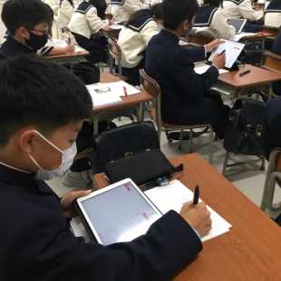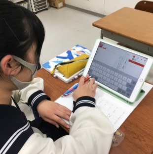 2021年04月26日(月) 過去のニュース 授業風景(中1) 5限目、1年4組は、国語の授業中です。今年度から導入したタブレットを使って、国語の辞書アプリをインストールしています。インストールが終わると、実際に新出単語の意味調べをします。慣れないうちは手を挙げて先生にやり方を質問する生徒もちらほらいましたが、すぐに要領を掴み、スムーズにできるようになりました。5月17日から(中1,2は19日から)始まる第1回定期考査で高得点を取れるよう、毎日の授業を大事にし、定着できるように頑張りましょう。