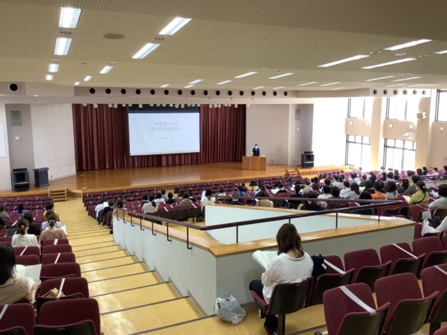 本日14時より、開智ホールにて、中1の保護者会を行いました。扉や窓を開け、手指消毒など、感染症対策をしっかりとして実施しました。全体会では、高松学校長の挨拶のあと、学年主任より、学年の現状や取り組み、コース変更・クラス編成、行事予定について説明を行いました。