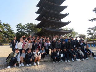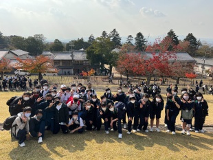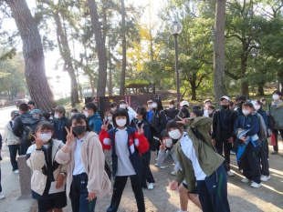 2021年11月17日(水) 過去のニュース 中1遠足 奈良方面 中1は、入学してから初めての遠足に行ってきました。事前に調べ学習を行った大仏殿の大きさに圧倒されるなど、古都奈良の趣のある景観を味わいながら、級友とリフレッシュした時間を過ごすことが出来ましたね。来週は、各ポイントで撮った写真を使いながら、まとめ学習を実施します。良い学びになるよう、班員と力を合わせて頑張っていきましょう。 お昼ご飯を食べた若草山での1年生全体写真です。 春日大社① 春日大社② 興福寺① 興福寺② 1-1集合写真 1-2集合写真 1-3集合写真 1-4集合写真
