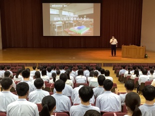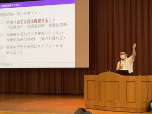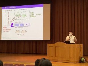 2022年07月14日(木) 過去のニュース 進路講演会(中5・高2) 中5・高2生徒を対象に進路講演会を開催しました。株式会社JSコーポレーションの武川昌史先生をお招きして、希望進路実現のため共通テストまでの約550日をいかに過ごすべきか、お話をいただきました。今日のお話をきっかけに気持ちを引き締め直し、この夏をがんばって乗り越えましょう。