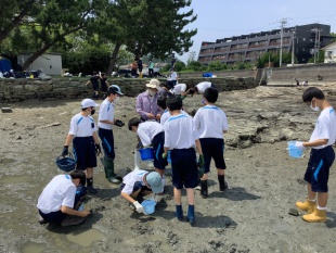 2022年07月15日(金) 過去のニュース 中学 S文理コース 干潟実習(観察会) 本日、中学1~3年生のS文理コース生が、和歌浦の観海閣にて、干潟の生物観察会を行いました。 和歌山大学 教育学部の古賀庸憲先生による指導のもと、生徒達は元気に生物採集を行っていました。 ここ数年、コロナ禍でこのような体験の機会が減っていたため、自然とふれ合う有意義な実習となりました。