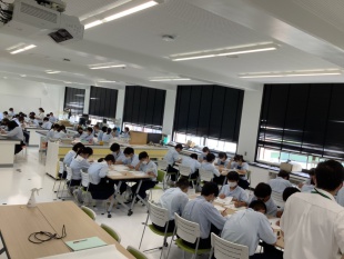 2022年08月04日(木) 過去のニュース 中学1・2年生 ジュニア科学オリンピック(予選会) 本日、中学1・2年生のS文理コース生と中学2年生の特進コースの希望者で、第10回きのくにジュニア科学オリンピック(予選会)に参加しました。 コロナ禍のため、エントリーしたそれぞれの中学校での実施となりました。1チーム4~6名で、与えられた課題にチームで協議しながら取り組みました。もし勝ち残れば、9月に行われる本選に出場することになります。