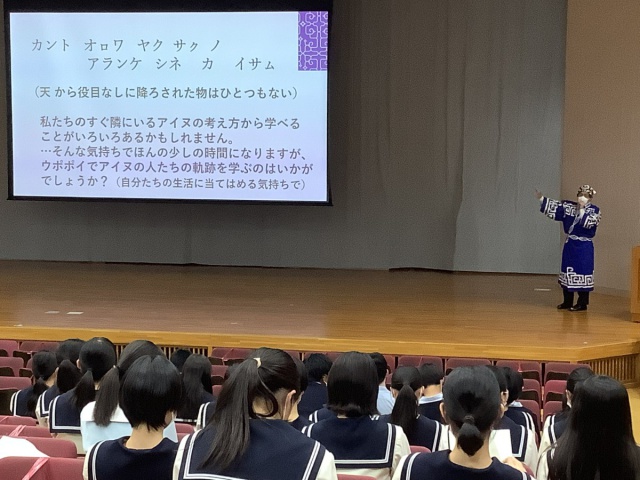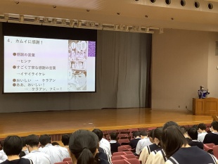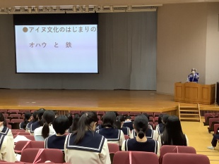 2022年10月19日(水) 過去のニュース 修学旅行事前学習(中5・高2) 来月の修学旅行に向けて事前学習を行いました。社会科の南先生から「先住民族アイヌの文化や精神」について講義をいただきました。北海道での活動や学習の時に思い出し、更に有意義な修学旅行にしたいですね。