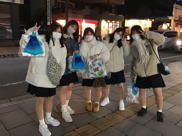 2022年11月17日(木) 過去のニュース 高2修学旅行3 小樽自主研修 小樽で各クラスの集合写真をとり、その後解散して自主研修をしました。 お土産を選んだり、オルゴール博物館に行ったり、小樽を満喫していました。 途中少し雪が降りましたが、それも良し、です。